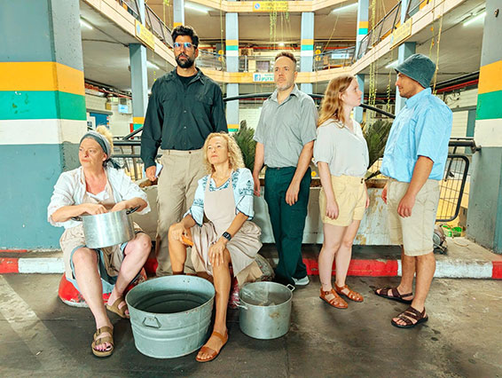 ניקו ניתאי – בעיצומן של ההכנות לטקס החג בקיבוץ, בין שירה, צחוק וזיכרון, מתפרצת המציאות הישראלית על כל מורכבותה. הניסיון לשמור על אופטימיות ואחדות מתנגש בהשפעות המלחמה, בכאב, בסדקים ובשאלות שעוד אין להן תשובה. סיפור ההצגה נוצר כחוויה תיאטרלית ייחודית השוברת את הגבולות בין במה לקהל, משולב בהומור ושירים, על הרוח הישראלית – ועל המאבק להמשיך ולצעוד בארץ יחפה.