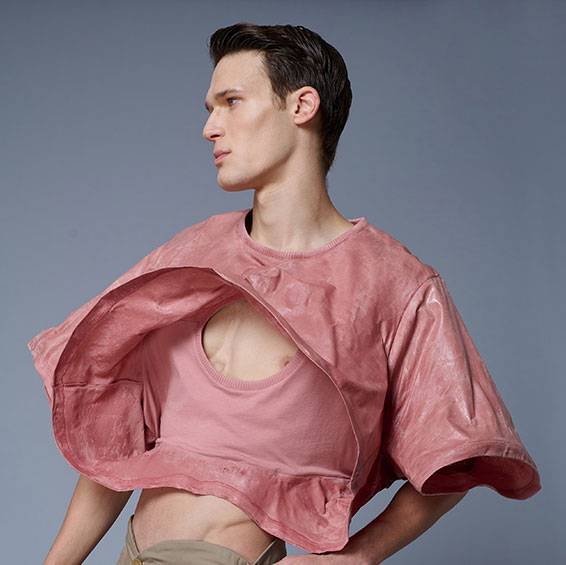 מה תפקידה של מעצבת אופנה בעידן שבו הכול כבר נעשה? זו השאלה שהניעה את עדי גז (נ' 1999): במקום לרדוף אחרי חידוש לשם חידוש, היא מערערת על מיתוס הדף הלבן ובוחרת ליצור בתוך מה שכבר קיים - לפרק ולעוות אותו, לחשוב דרכו. מתוך מחשבה על קיימות, נקודת המוצא של גז בתהליך העיצוב הייתה לקחת את פריטי הלבוש המוכרים, כמו מכנסיים וחולצה, ולערער על הצורה והמשמעות שלהם. היא עבדה עם טכניקות של מיחדוש - פירוק, הרכבה מחדש - וחיברה בין עולמות חומריים שלא "אמורים" להיפגש.