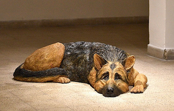 שירה זלוור (נ' 1978) יוצרת בשעווה פסלים ריאליסטיים טעונים ברגש, זיכרון ואשליה. בין אם מדובר בכלב רועה גרמני שרוע במבט עייף על הרצפה ומעליו תלוי עציץ ביתי, סידור פרחים מהודר, להקת עורבים שצופה מלמעלה על המבקרים, או עבודת רקמת פרחים בסגנון גובלן, זלוור יוצרת דימויים מרובי שכבות שמטשטשים את הקו בין אשליה למציאות. זלוור לא מנסה להעתיק את המציאות, אלא להעניק לה הזרה קלה, סדק קטן – שמאפשר למשהו אחר לחדור פנימה: שבר, זיכרון, כמיהה, פליאה. החומרים שבהם היא משתמשת מאפשרים לה ליצור דימויים שמתקיימים על התפר שבין פיסול לציור, בין ממשי לפנטסטי, בין קבוע לרגעי.